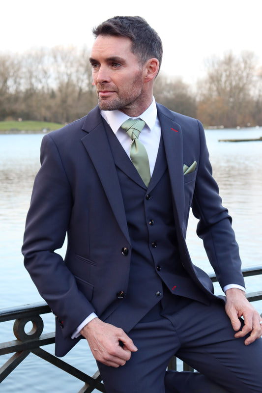 CHARLES NAVY CONTRAST STONE THREE PIECE