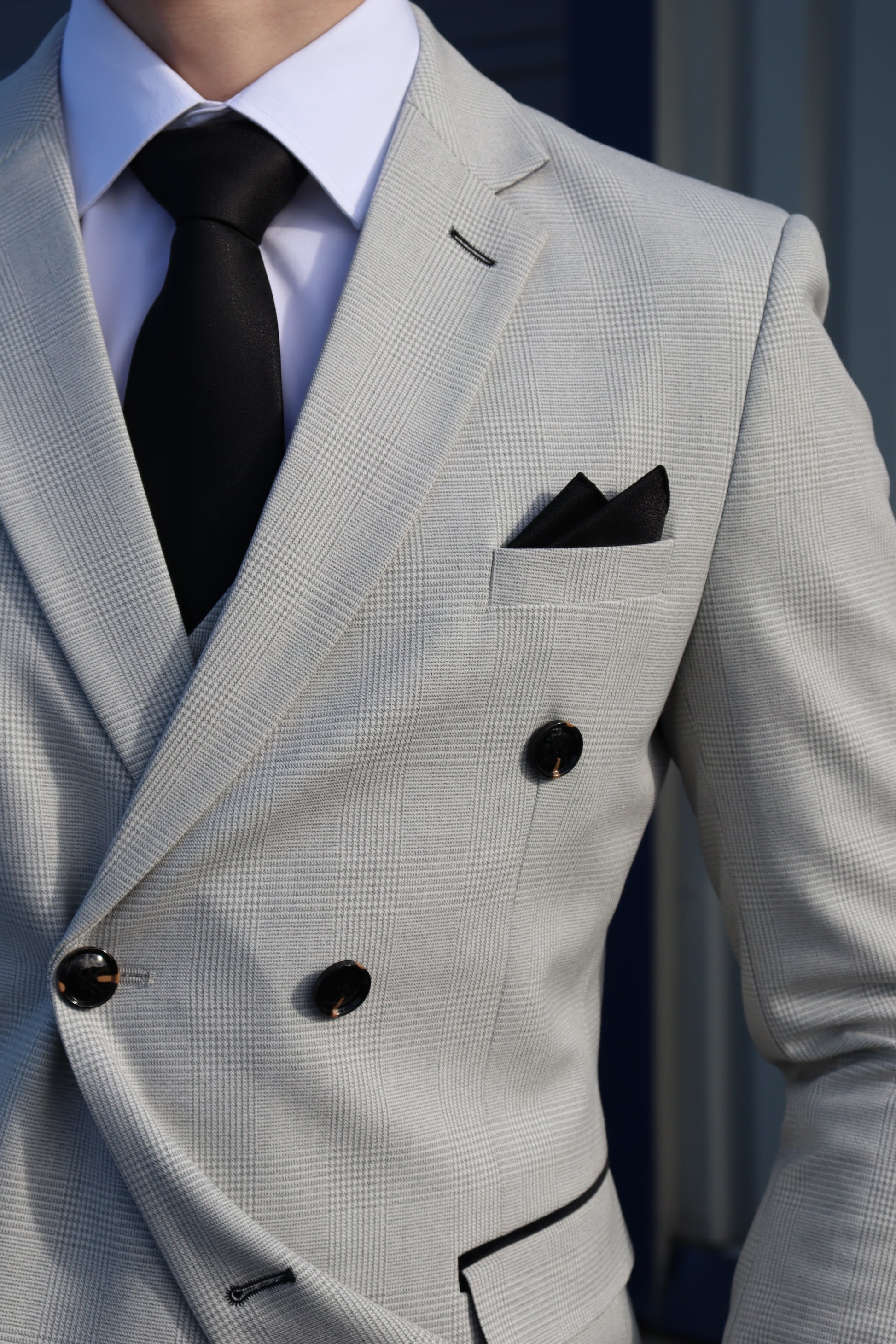 A bold update to a SUITBAE classic. The Charles Stone Double Breasted Contrast Suit combines a stone blazer with black piping and a six-button front for a sharp, confident look built to turn heads at weddings, proms and the races.