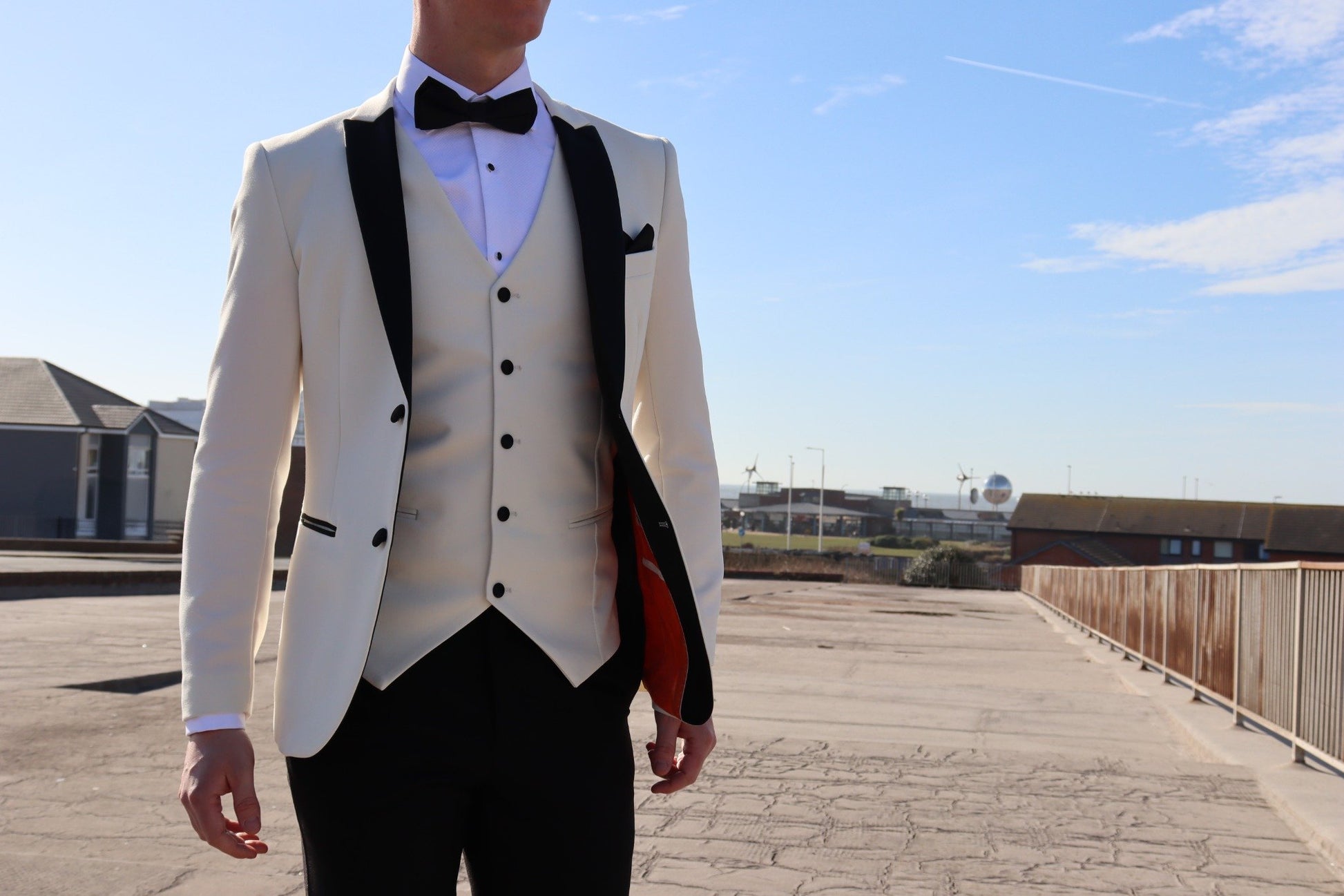 Perfect for grooms, matching groomsmen, black tie events, proms, weddings, charity galas, cruises, or any formal occasion where standing out in ivory is the move. This tuxedo flips the script on tradition with bold contrast, luxe detailing, and a silhouette that speaks volumes.