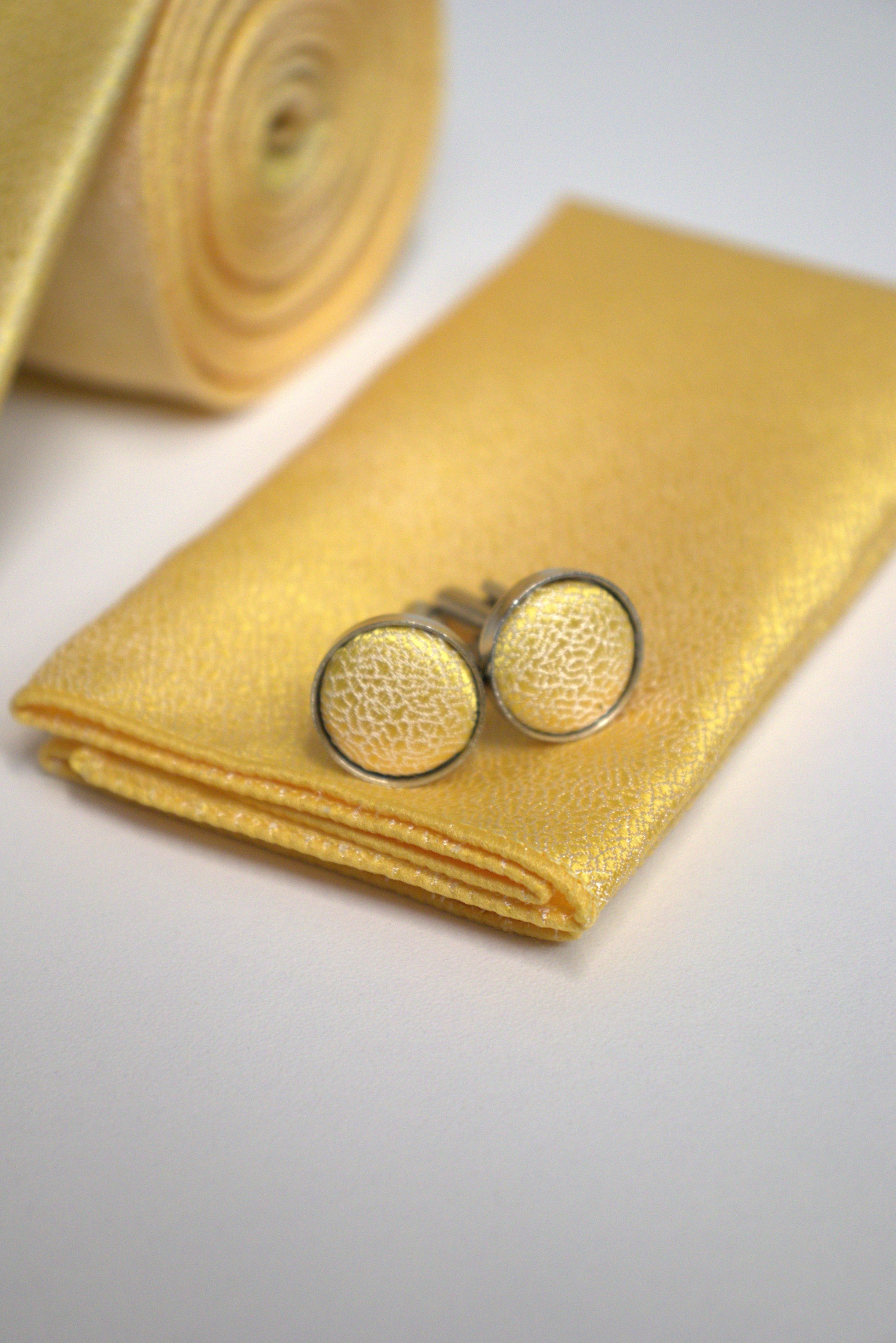 A bright banana yellow tie set that brings a burst of sunshine yellow to any outfit. Often described as bold yellow or vibrant lemon, it’s ideal for weddings, spring events, or making a joyful fashion statement. Includes a tie, pocket square, and cufflinks to keep your look smart and coordinated.