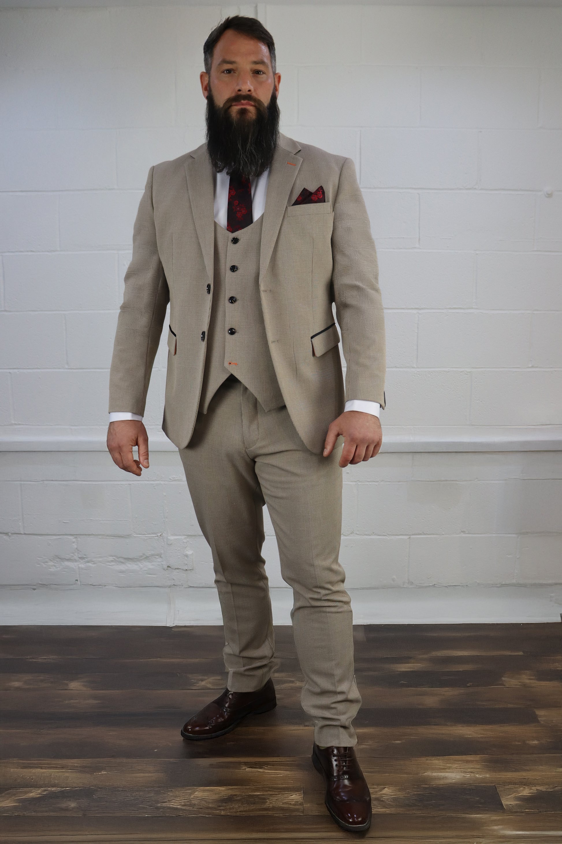 A unique choice for weddings, proms, the races and job interviews. This beige checked suit is a fantastic addition that can be worn confidently at many events.