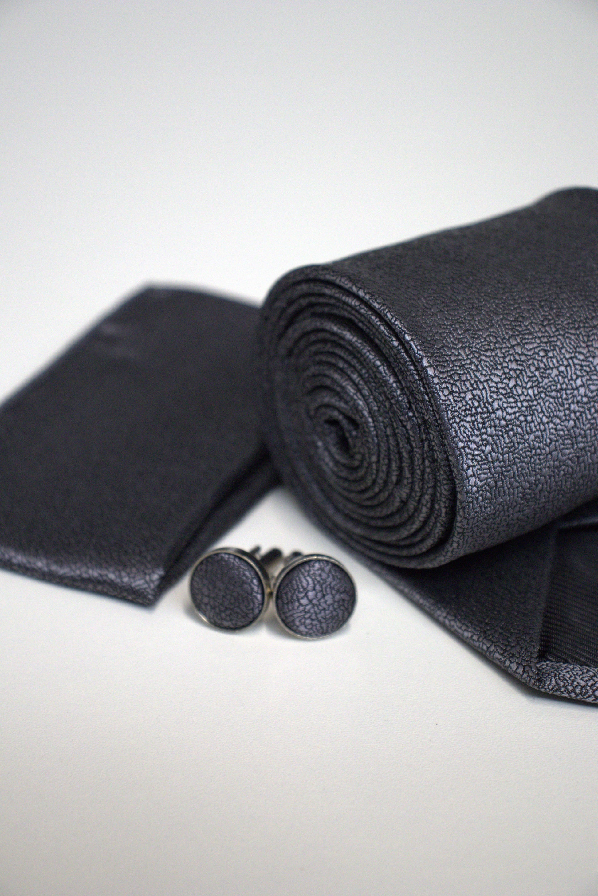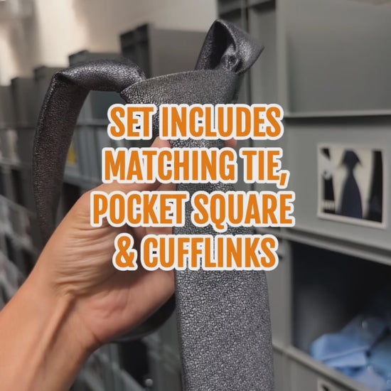 Charcoal Metallic Silver / Grey Textured Tie Set